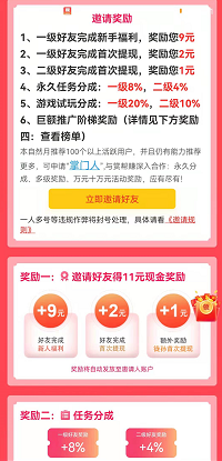 4、永久任务分成:一级8%,二级4%