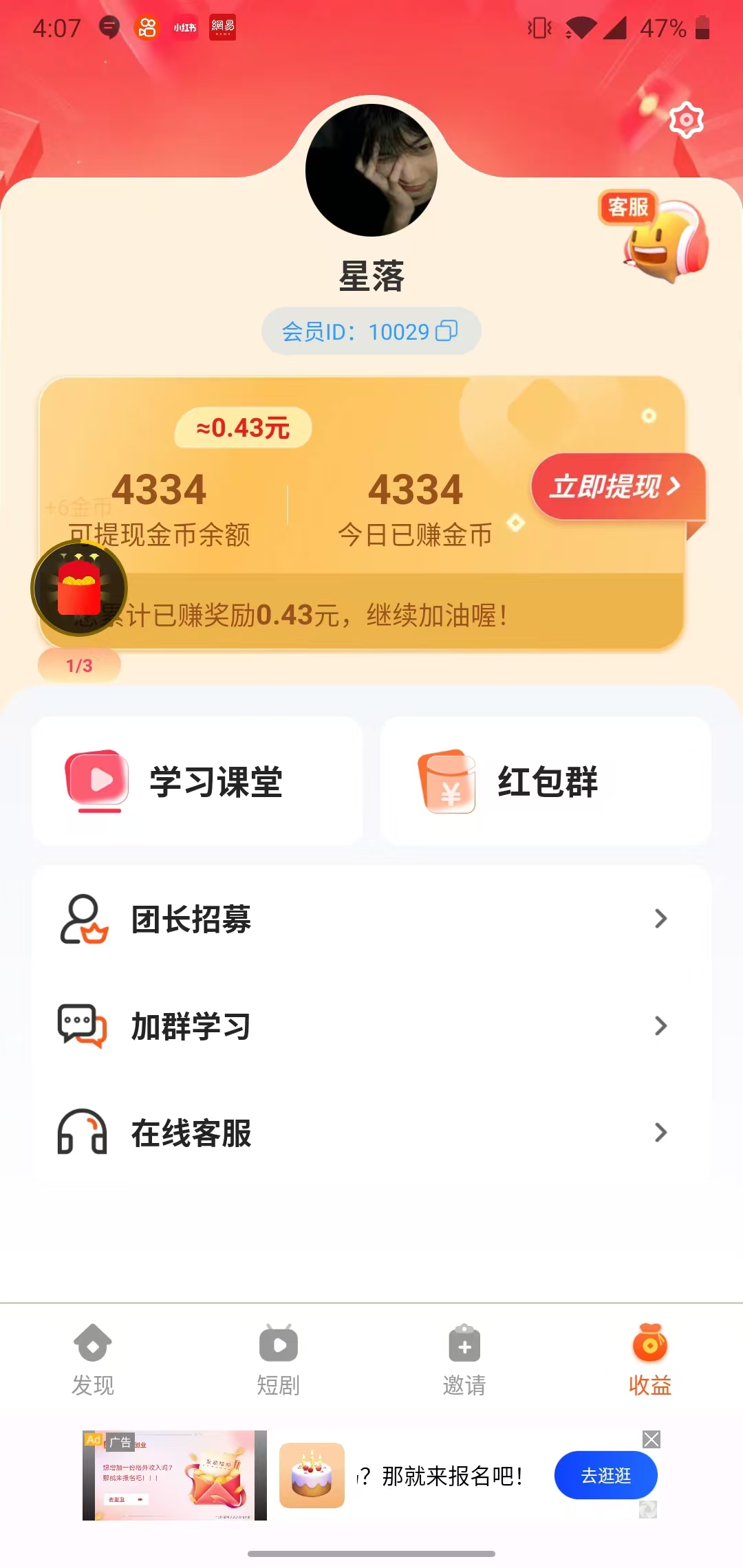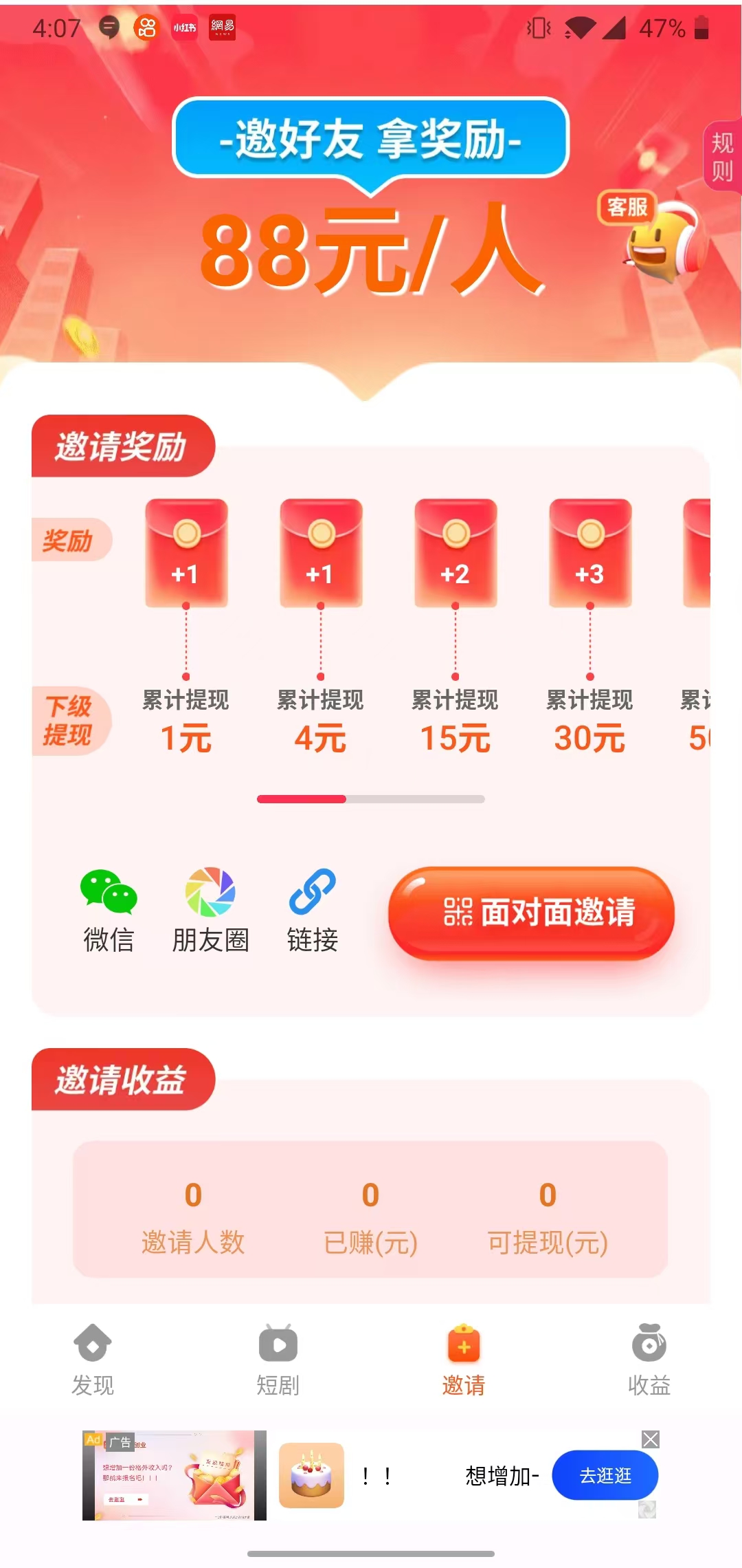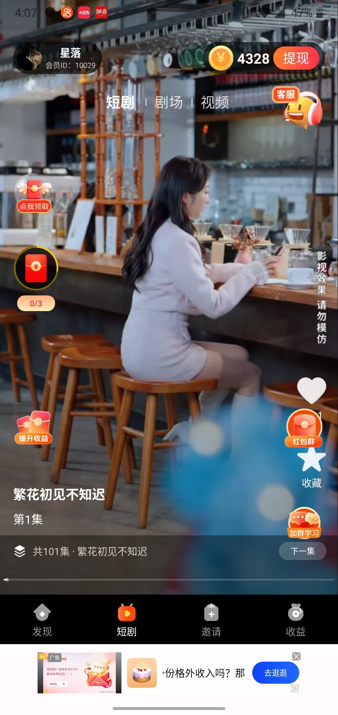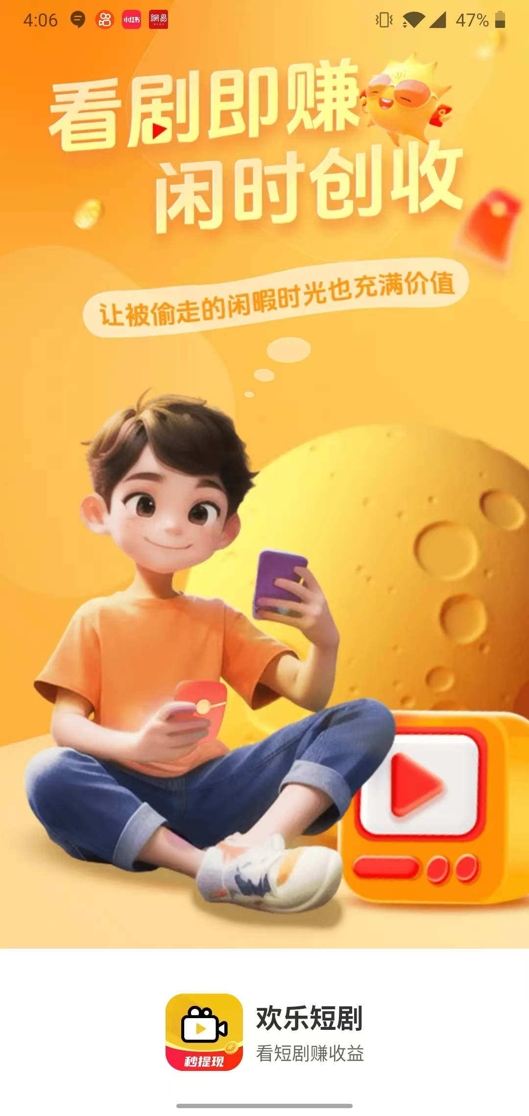 【欢乐短剧】—— 让你边看剧边赚钱! 在这个快节奏的时代里,每个人都渴望找到一种既能放松心情又能获得额外收入的方式。 欢乐短剧APP应运而生,它是一款集娱乐与收益为一体的创新平台,让你在享受精彩短剧的同时还能赚取金币。 【海量短剧 随心所欲】 多样化内容:从爆笑喜剧到温情故事,从科幻奇幻到都市情感,满足不同观众的需求。 汇聚众多才华横溢的创作者,带来独一无二的作品。 高清画质:支持高清播放,让每一个细节都清晰可见。 【边看边赚 轻松提现】 观看即赚:只需观看短剧就能轻松赚取金币。 秒提现金:积累的金币可以随时兑换为现金,提现流程简单快捷,到账迅速。 邀请好友:邀请更多朋友加入,共同享受欢乐时光。